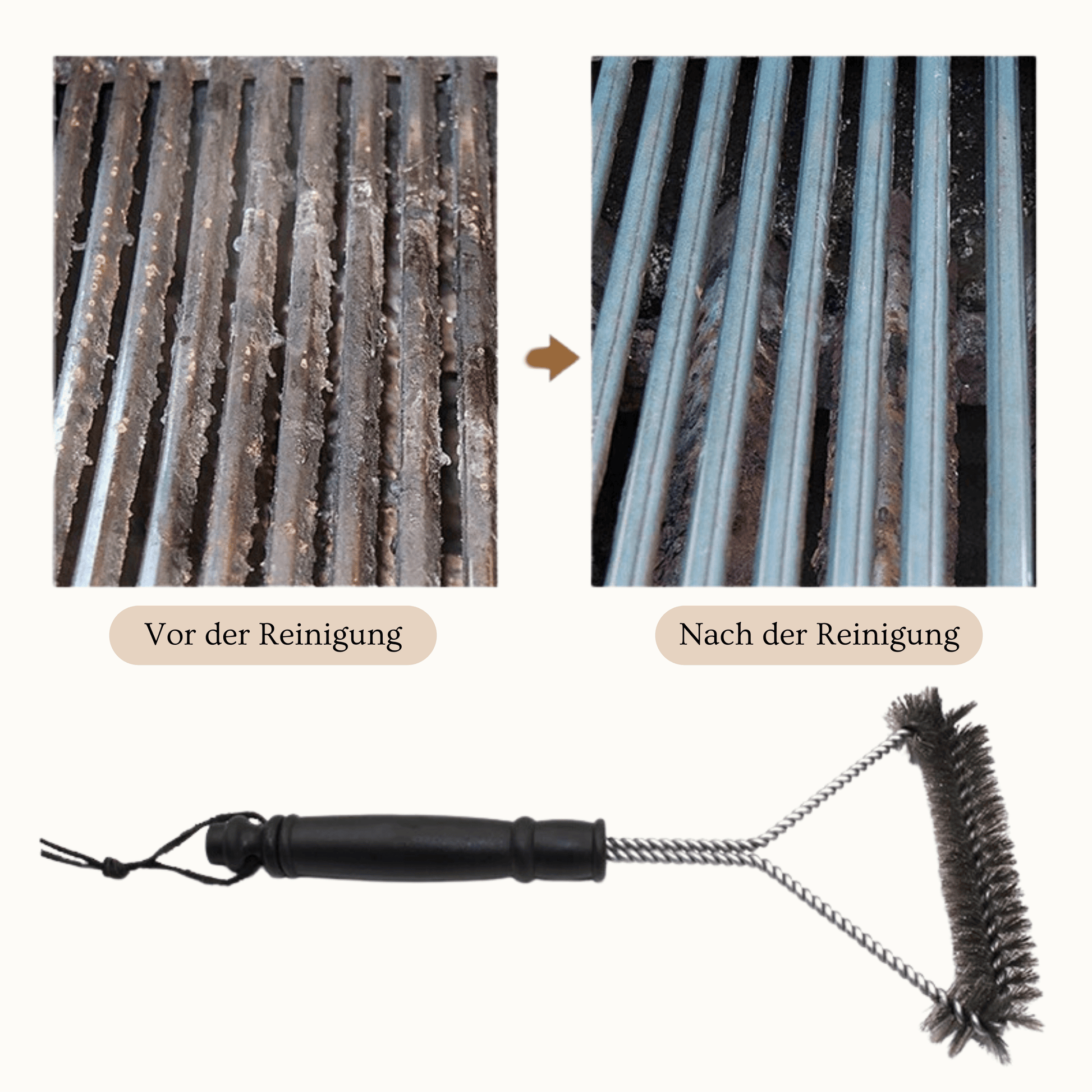 Die Reinigung Ihres Grills wird mit unserer Grillreinigungsbürste zu einer einfachen und zeitsparenden Aufgabe. Genießen Sie die Grillsaison ohne Sorgen und erleben Sie das Vergnügen, auf einem makellos sauberen Grill zu kochen.